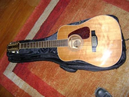 12-saitige Gitarre mit Hülle und Stimmgerät